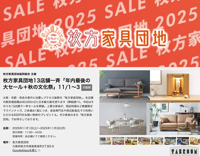 ↓画像クリックで枚方家具団地のセール申し込みページ(タブルーム)へリンクします。