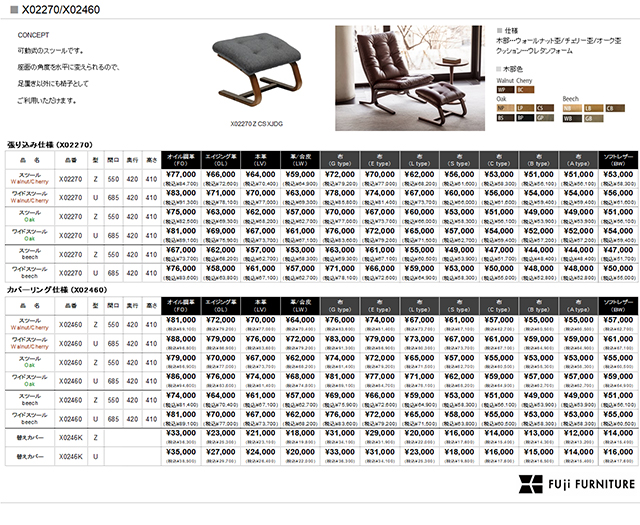 木部種類・木部カラー・張地ランク・張地カラーにつきましては、