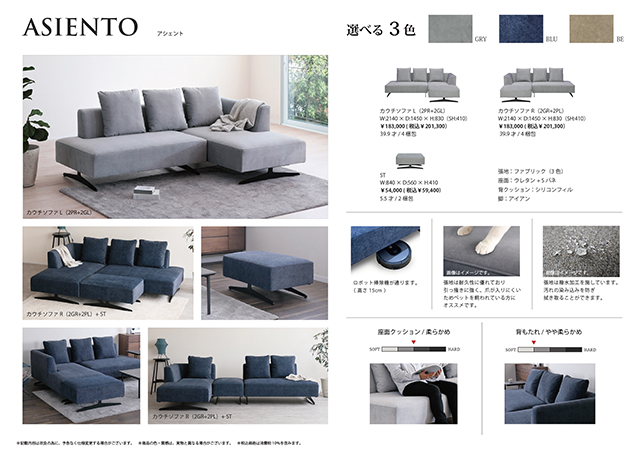 掲載及び展示商品は、2PソファR/2GソファL となります。