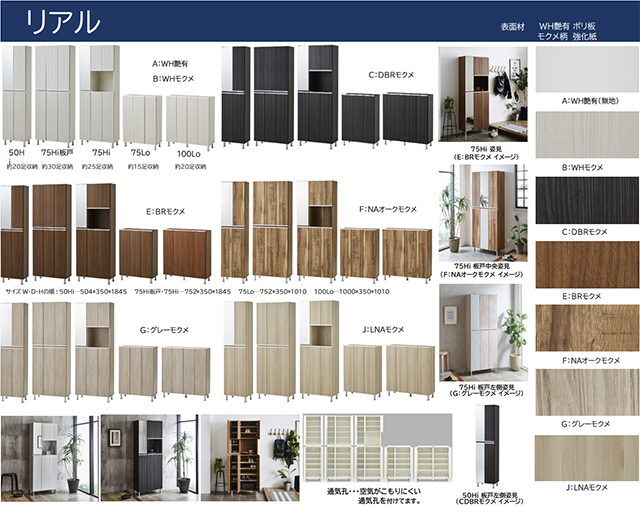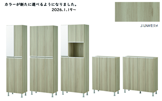 新たに新色2カラー(F:オーク木目・G:グレー木目)が追加され、
