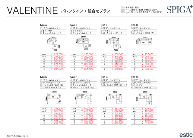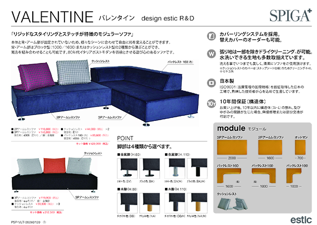 13706 〖estic by SPIGA+〗VALENTINE(バレンタイン) リジットなスタイリングのモジュラーソファ
