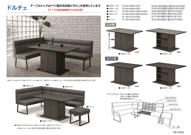 シックでお洒落なデザインのベンチタイプの食卓ダイニングシリーズです。