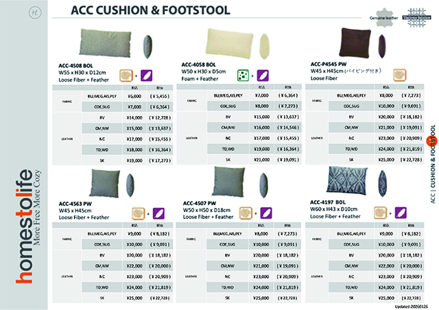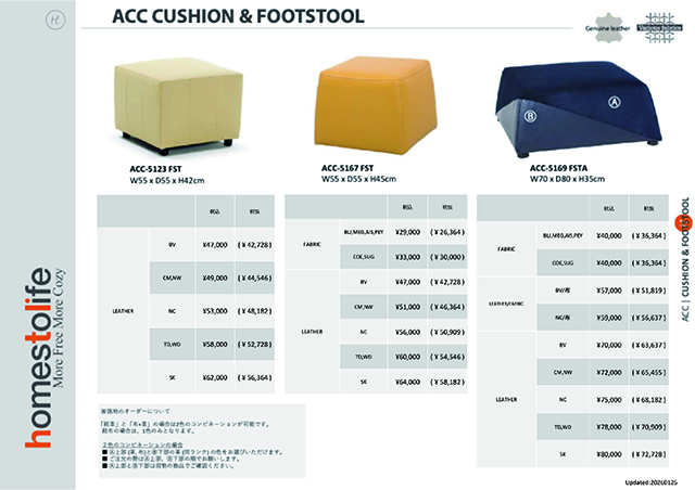 | 色 | 総革(各ランク有)/ファブリック(各ランク有)/オーダー対応 |