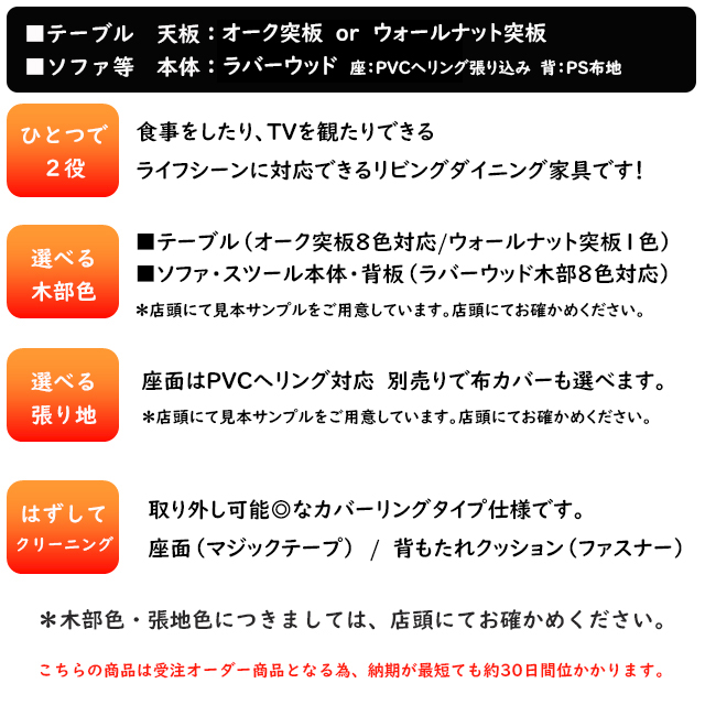 材質 本体:ラバーウッド材 張地:(オーダー)