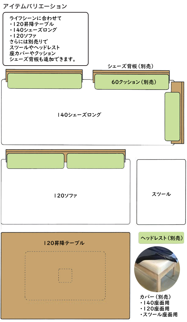 店頭では、140シェーズロング・シェーズ背板・60クッションもご覧いただけます。