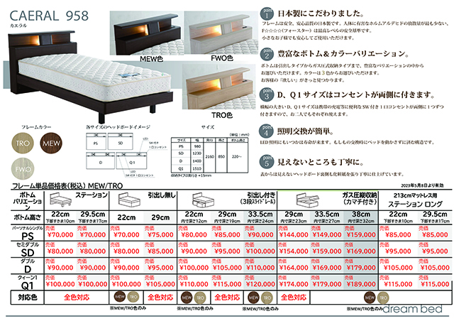 205 〖ドリームベッド〗カエラル958 選べるボトムデザイン ベッドフレーム