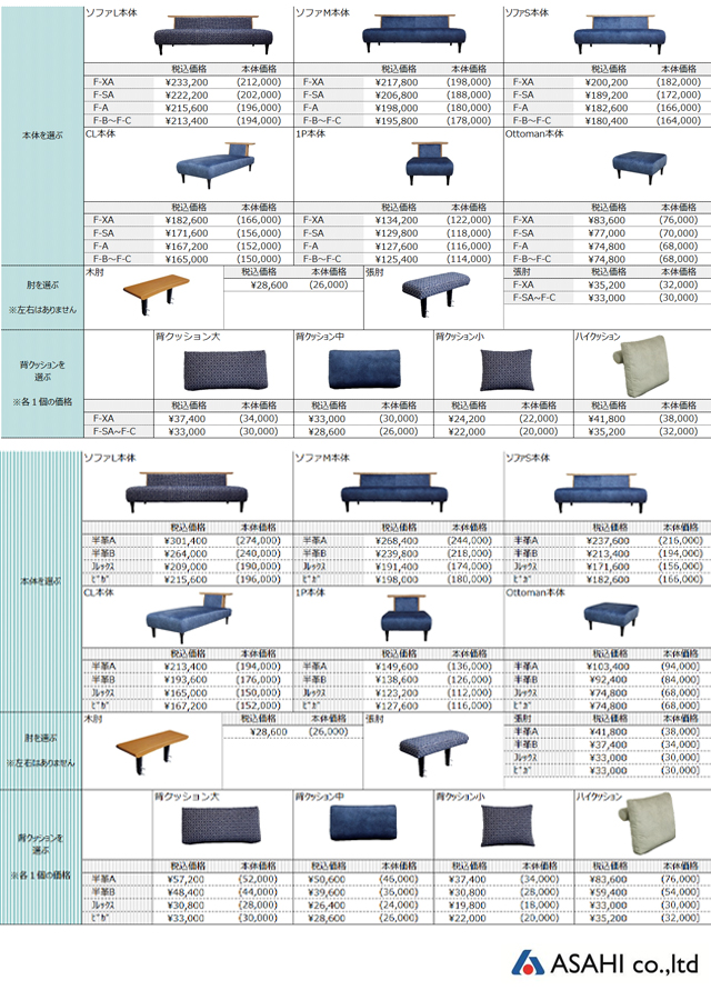 *仕様及び張地ランク・カラー、価格等につきましては、予告なく変更される場合がございますので、店頭にてお確かめください。