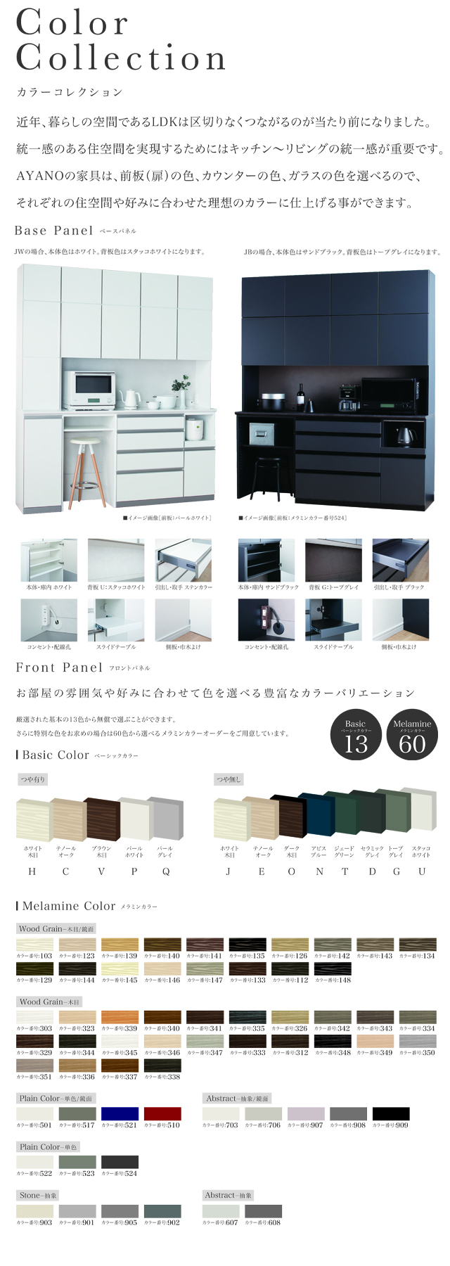 色 | 本体:2色 前板カスタマイズ:オーダー色:12 or 13色 /メラミン60色対応 |