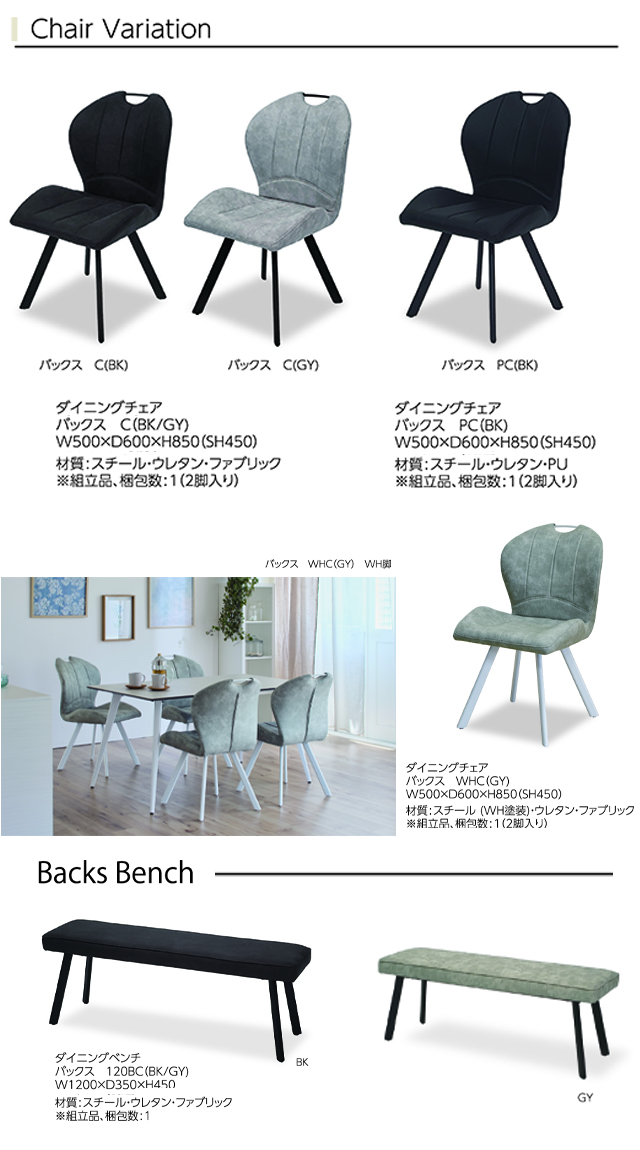 同シリーズのチェア・ベンチも選べます。