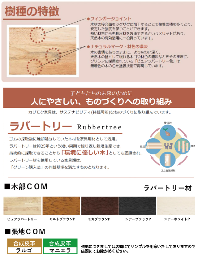 | 色 | 木部:5色対応 張地:セミオーダー |