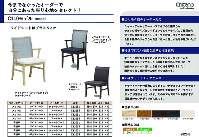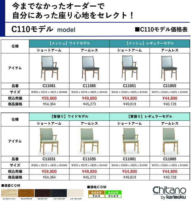504 〖Chitano by カリモク〗C110モデル セレクトチェアシリーズ