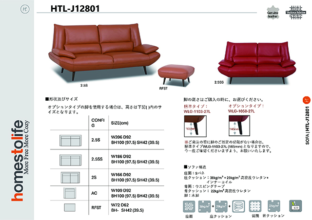 〖HTL〗J12801 張地オーダーリビングソファ