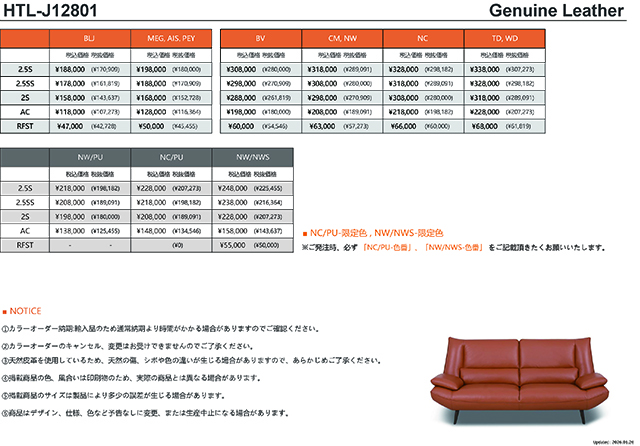 総革(各ランク有)/ファブリック(各ランク有)/レザー(各ランク有) オーダー対応