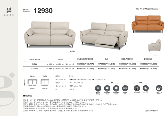 713 〖HTL〗12930 ギャラリーコレクション 電動リクライニング ソファ