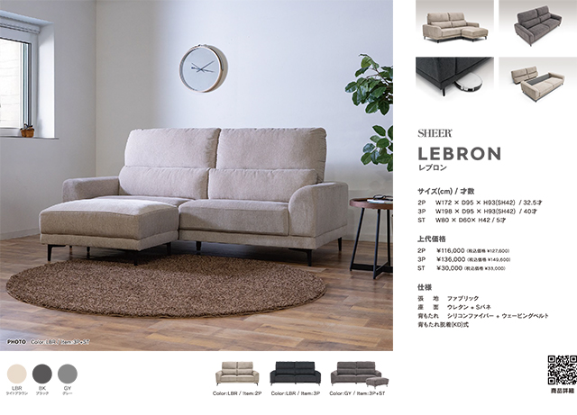 803 〖レイコージャパンbySHEER®〗レブロン デザインファブリックソファシリーズ