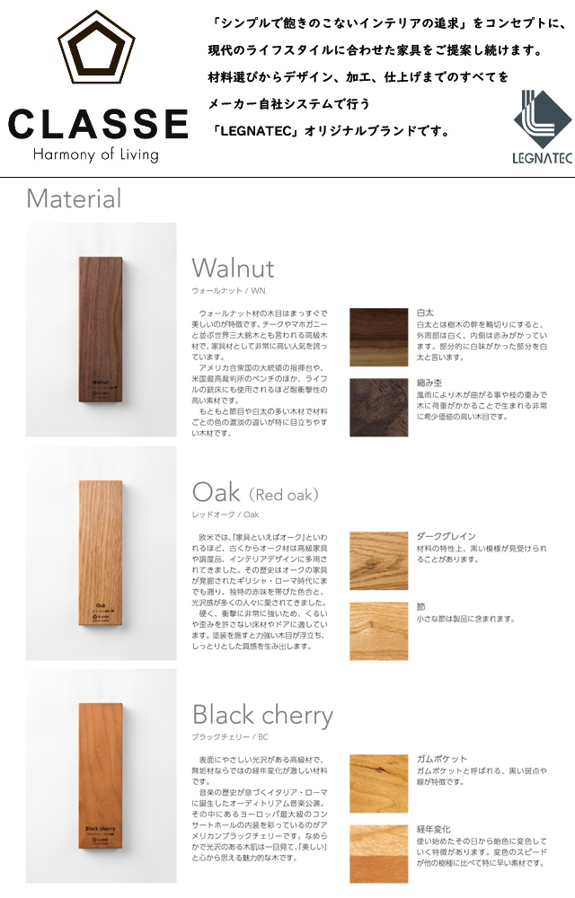 材質 本体:3素材対応(無垢材) 塗装:ウレタン塗装
