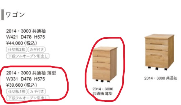 ※↑こちらのワゴンは薄型ではございません。色目の参考画像になります